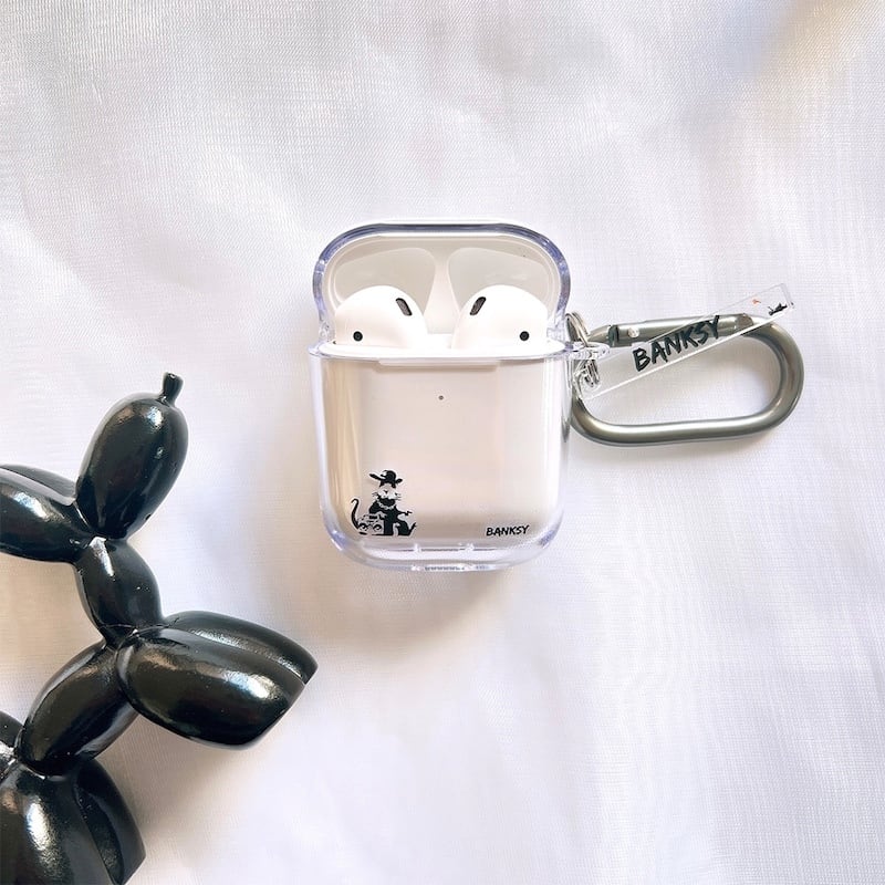 airpods pro 2 ケース かわいい airpods 4 ケース 第4世代 韓国 airpods proケース おしゃれ 第2世代 ケース カバー airpods 2 3 第3世代 第1世代 バンクシー Banksy ギャングスターラット Gangsta Rat 透明 クリア