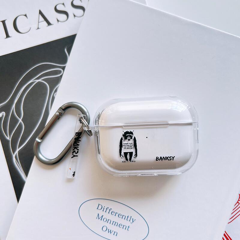 airpods pro 2 ケース かわいい airpods 4 ケース 第4世代 韓国 airpods proケース おしゃれ 第2世代 ケース カバー airpods 2 3 第3世代 第1世代 バンクシー Banksy Laugh Now 透明 レディース メンズ
