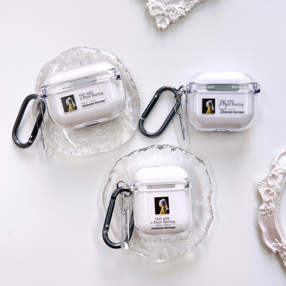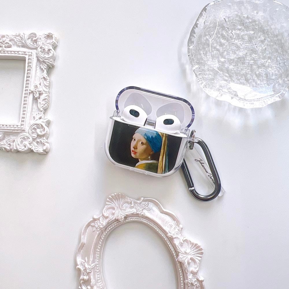 airpods pro 2 ケース かわいい airpods 4 ケース 第4世代 韓国 airpods proケース おしゃれ 第2世代 ケース カバー airpods 2 3 第3世代 第1世代 絵画 名画 アート イラスト フェルメール 真珠の耳飾りの少女 クリア 透明 レディース メンズ