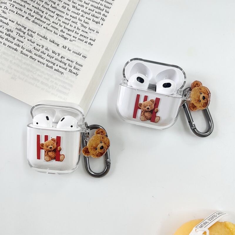 airpods pro 2 ケース かわいい airpods 4 ケース 第4世代 韓国 airpods proケース おしゃれ 第2世代 ケース カバー airpods 2 3 第3世代 第1世代 くま ベアー テディベア クリア レディース カラビナ チャーム
