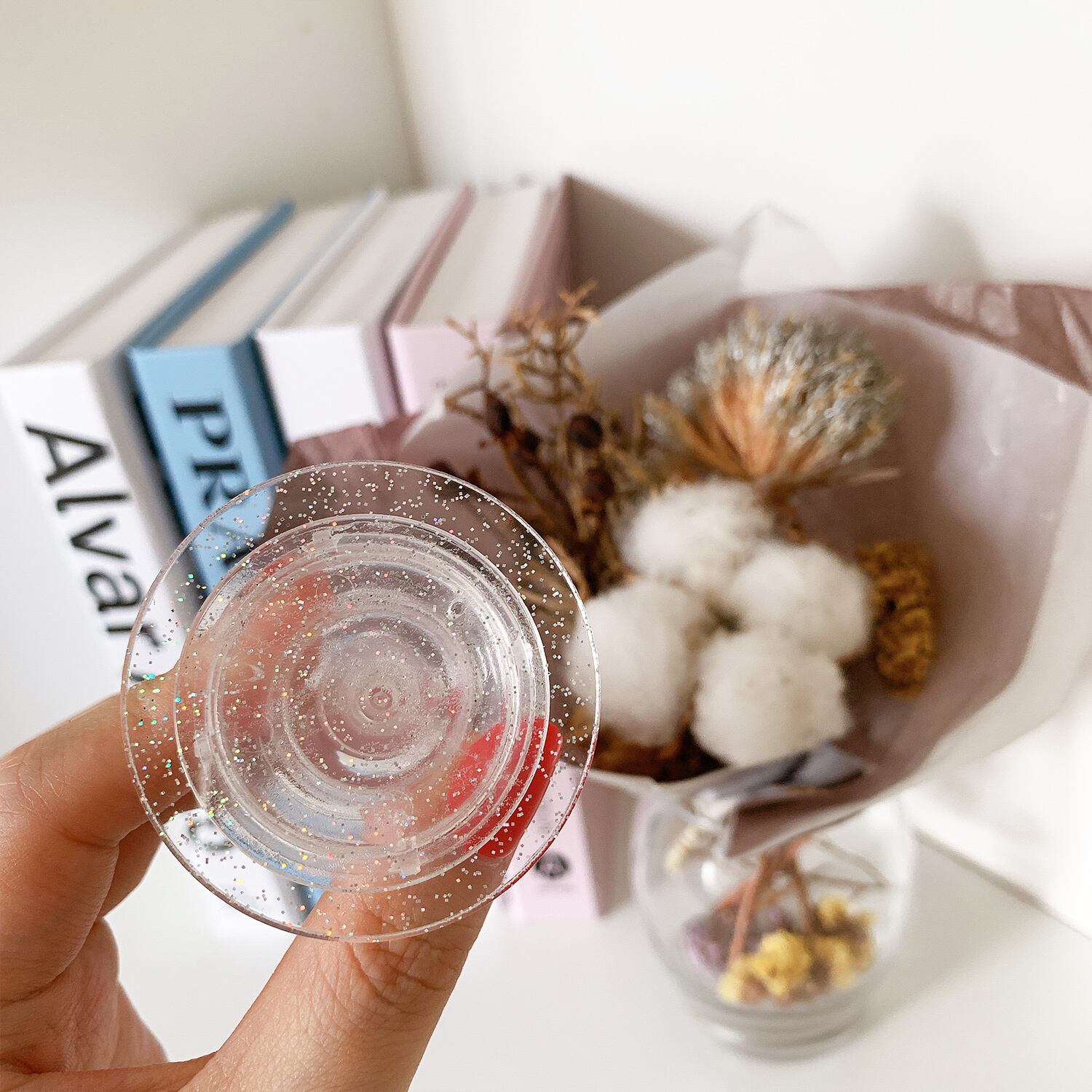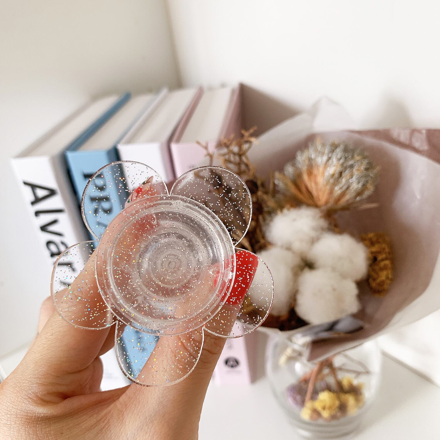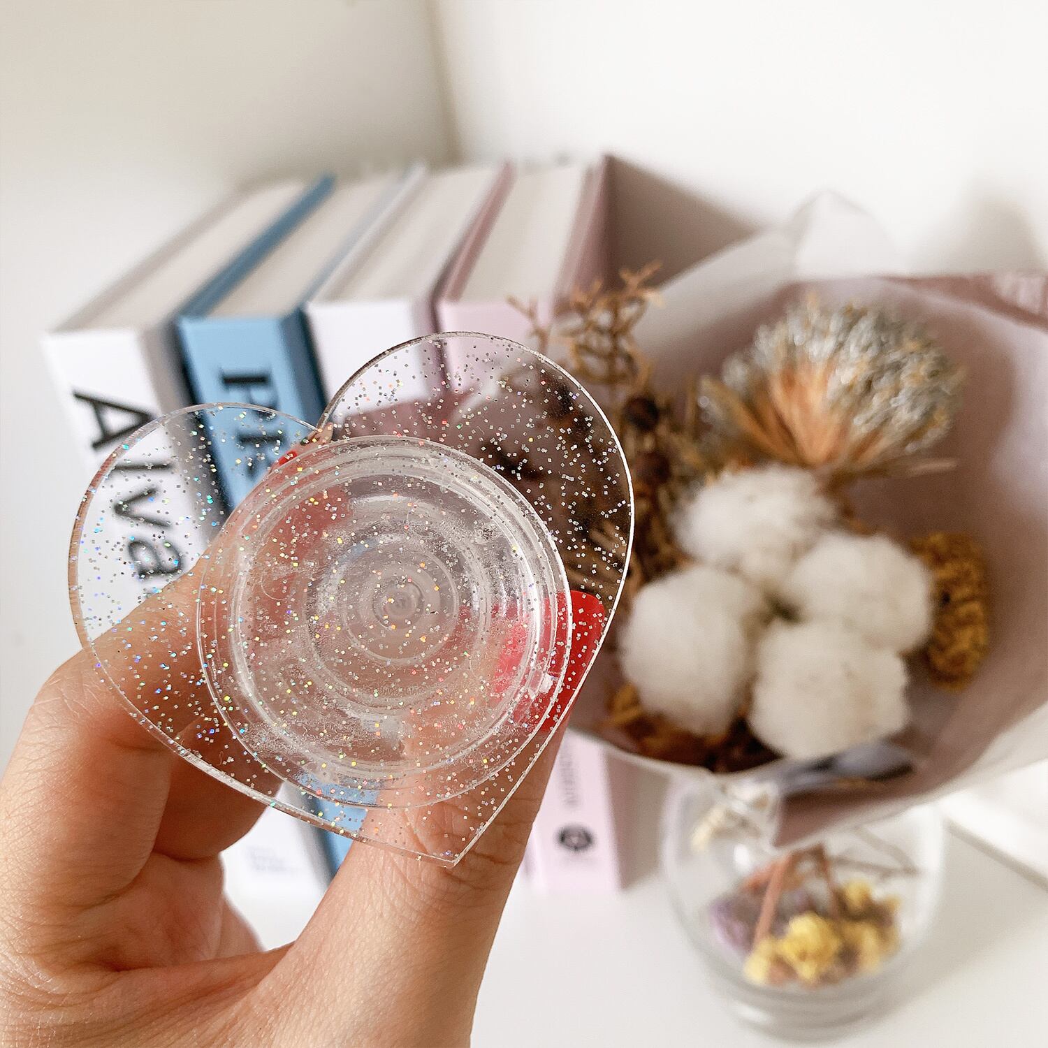Clear glitter design grip